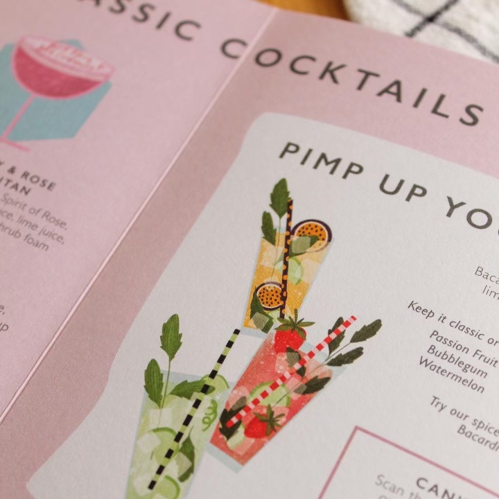 A series of stylised cocktail illustrations for Pitcher and Piano's cocktail menu